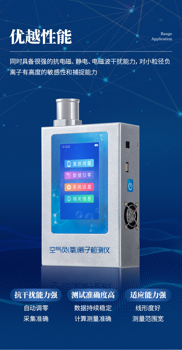 实时测量空气中的大气负氧离子浓度、甲醛浓度,是环境监测、纳米涂料、负离子保健产品、负离子家装建材、室内检测、空气治理、空气净化器及其制品负离子浓度的测量与演示的优选工具。